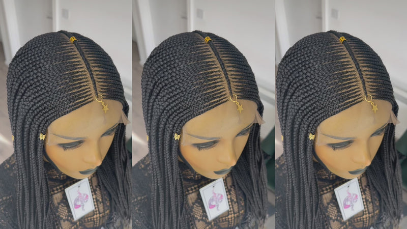 Cornrow Braided Wig with Curls - 1b/27 ombre