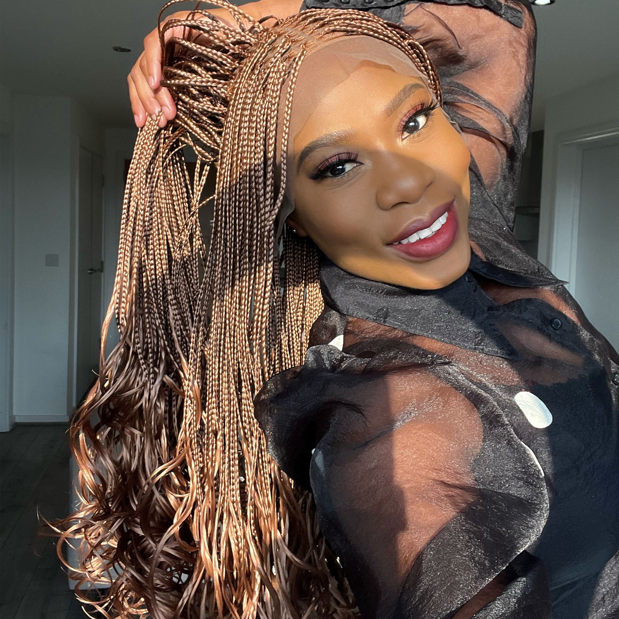 Cornrow Braided Wig with Curls - 1b/27 ombre