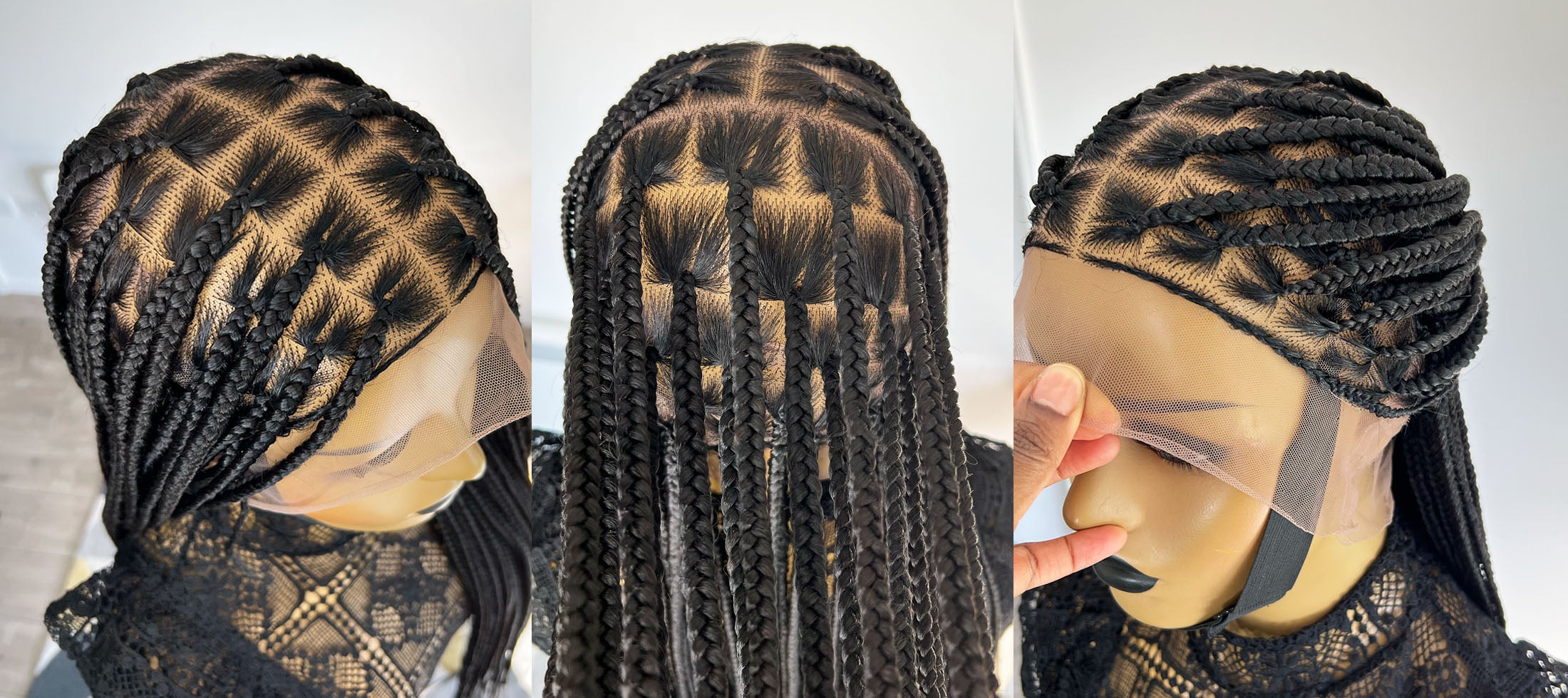 Unique Full Lace Medium Knotless Braid Wig - #1b